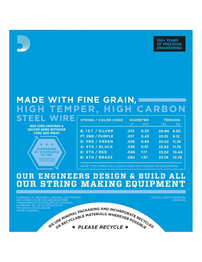 XL Nickel Wound, le corde D'Addario più popolari per chitarra elettrica, avvolte con precisione in nickelplated steel su un’anima a forma esagonale. Il risultato: corde di lunga durata con caratteristico tono brillante e ottima intonazione, l'ideale per la più ampia varietà di chitarre e stili musicali. Progettato per la moderna e più corta scala delle chitarre elettriche baritono, il set EXL158 è anche un'eccellente soluzione per un profondo down-tuning.